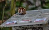 Seekor Kukang Jawa (Nycticebus javanicus) keluar dari kandang sementara saat dilepasliarkan ke tempat Suaka Margasatwa Gunung Sawal (SMGS), Kabupaten Ciamis, Jawa Barat, Jumat (3/5/2019). (FOTO : Antara/Adeng Bustomi)