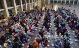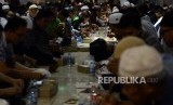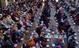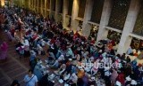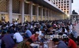 REPUBLIKA.CO.ID, JAKARTA -- Sejumlah umat muslim berbuka puasa pada hari pertama bulan suci Ramadhan 1440 Hijriah di Masjid Istiqlal, Jakarta, Senin (6/5). Masjid Istiqlal menyiapkan 2.000 - 4.000 takjil setiap hari selama Ramadhan.