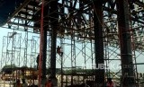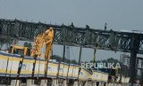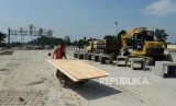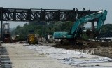 REPUBLIKA.CO.ID, KARAWANG -- Pekerja saat menyelesaikan pembangunan Gerbang Tol Cikampek Utama di Jalan Tol Jakarta-Cikampek, Kabupaten Karawang, Jawa Barat, Selasa (7/5).