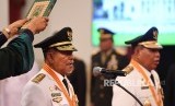 Gubernur Maluku Utara Abdul Gani Kasuba (kiri) dan Wakil Gubernur Al Yasin Ali mengikuti pelantikan yang dipimpin Presiden Joko Widodo di Istana Negara Jakarta, Jumat (10/5/2019). (FOTO : Antara/Wahyu Putro A)