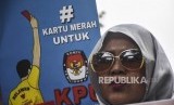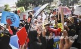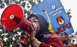 REPUBLIKA.CO.ID, BANDUNG -- Sejumlah massa yang tergabung dalam Emak-emak Gerakan Rakyat Anti Pemilu Curang melakukan aksi keprihatinan di depan Kantor KPU Jawa Barat, Kota Bandung, Jumat (10/5).