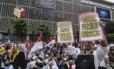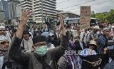 Sejumlah massa aksi yang tergabung dalam Persaudaraan alumni 212 atau PA 212 melakukan aksi damai di depan gedung Badan Pengawas Pemilu (Bawaslu), Jakarta Pusat, Jum’at (10/5). (FOTO : REPUBLIKA)