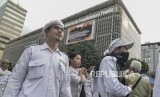 REPUBLIKA.CO.ID, JAKARTA -- Sejumlah massa menggelar aksi damai di depan gedung Badan Pengawas Pemilu (Bawaslu), Jakarta Pusat, Jum’at (10/5).