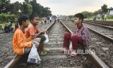 REPUBLIKA.CO.ID, BANDUNG -- Sejumlah warga beraktivitas di rel Kereta Api di kawasan Stasiun Kiaracondong, Kota Bandung, Jumat (10/5). Meski dilarang dan dapat membahayakan keselamatan, warga setempat tetap menggunakan area rel Kereta Api sebagai tempat untuk ngabuburit.