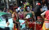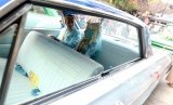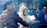 Sebelum upacara pernikahan, mereka diarak dengan menggunakan mobil antik.
