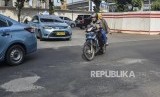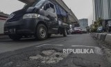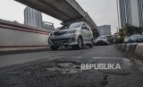 REPUBLIKA.CO.ID, JAKARTA -- : Sejumlah kendaraan melintasi jalan rusak di Jl.H.R.Rasuna Said Kuningan, Jakarta Selatan, Senin (13/5).