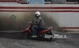 Jalan rusak akibat pembangunan kereta ringan LRT (Light Rail Transit) membahayakan pengendara yang melintas.