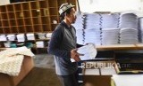 Pekerja menyelesaikan proses pembuatan Alquran Braille di Percetakan Yayasan Penyantun Wyata Guna, Jalan Pajajaran, Kota Bandung, Senin (13/5). (FOTO : Abdan Syakura)