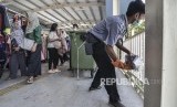 Sejumlah petugas kebersihan membersihkan sampah yang berserakan di Jembatan Multiguna (JPM) Skybridge, Tanah Abang, Jakarta Pusat, Selasa (14/5). (FOTO : Republika/Fakhri Hermansyah)