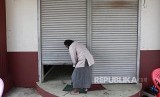 Seorang warga Muslim menutup bangunan yang dijadikan masjid di Yangoon, Myanmar terkunci setelah penguasa setempat melarang penggunaan tempat ini sebagai tempat ibadah. Kamis (16/5). Sebelumnya sekelompok massa memaksa pemerintah setempat menutup masjid dan mushala di Yangoon. (FOTO : LYNN BO BO/EPA-EFE)