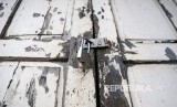 Pintu mushola di Yangoon, Myanmar terkunci setelah penguasa setempat melarang penggunaan tempat ini sebagai tempat ibadah. Kamis (16/5). Sebelumnya sekelompok massa memaksa pengusasa setempat menutup masjid dan mushala di Yangoon. (FOTO : LYNN BO BO/EPA-EFE)