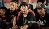 Anak punk menunggu ketika mengikuti proses penghapusan tato gratis di kolong jembatan stasiun tebet, Jakarta, Sabtu (18/5). (FOTO : Republika/Prayogi)