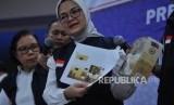 Kepala Badan Pengawas Obat dan Makanan Republik Indonesian (BPOM-RI) Penny K. Lukito menjelaskan kepada wartawan tentang temuan sejumlah makanan dan kopi dalam kemasan yang dinilai diedarkan secara ilegal di Jakarta, Senin (20/5). (FOTO : Republika/Edwin Dwi Putranto)