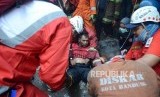 Karena lemas dan lelah seorang petugas pemadam kebakaran merangkak keluar dari ruangan setelah menembus pekatnya asap dan panasnya ruangan saat peristiwa kebakaran di Pasar Kosambi, Kota Bandung, Senin (20/1). (FOTO : Republika/Edi Yusuf)