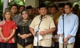 Pasangan Capres dan Cawapres No 02 Prabowo Subianto-Sandiaga Uno memberikan keterangan terkait hasil final rekapitulasi nasional KPU di Kertanegara, Jakarta, Selasa (21/5). (FOTO : Republika/Prayogi)