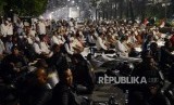 REPUBLIKA.CO.ID, JAKARTA -- Sejumlah massa melakukan aksi unjuk rasa di Jalan MH Thamrin, Jakarta, Selasa (21/5).