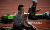 REPUBLIKA.CO.ID, JAKARTA -- Umat muslim membaca ayat suci Al-Quran usai menunaikan shalat Tarawih di Masjid Istiqlal, Jakarta, Selasa (21/5).
