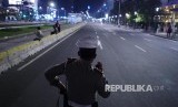 Polisi bersiap mengamankan lalu lintas setelah ruas Jl MH Thamrin dari arah Sarinah kembali dibuka pasca unjuk rasa di Gedung Bawaslu RI, Jakarta, Selasa (21/5). (FOTO : Yogi Ardhi/Republika)