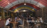 Sejumlah peserta menunggu waktu berbuka puasa pada kegiatan Pesantren Jurnalistik Republika di Kampung Pa'go, Kabupaten Bandung, Jumat (24/5). (FOTO : Republika)