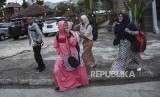 Sejumlah peserta tiba untuk mengikuti kegiatan Pesantren Jurnalistik Republika di Kampung Pa'go, Kabupaten Bandung, Jumat (24/5). (FOTO : Republika)