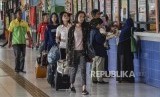 REPUBLIKA.CO.ID, JAKARTA -- Suasana pemudik mulai ramai di Terminal Kampung Rambutan, Jakarta Timur, Ahad (26/5).