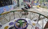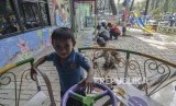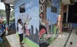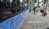 REPUBLIKA.CO.ID, JAKARTA -- Sejumlah pekerja menyelesaikan proses pengecatan Ruang Publik Ramah Terpadu Anak (RPTRA) di Terminal kampung rambutan, Jakarta Timur, Ahad (26/5).