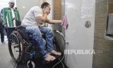 Masjid Ramah Disabilitas.Umat muslim penyandang disabilitas tuna rungu saat berwudhu di Masjid El Syifa, Ciganjur, Jakarta Selatan, Senin (27/5). (FOTO : Fakhri Hermansyah)