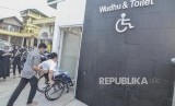 Masjid Ramah Disabilitas.Umat muslim penyandang disabilitas tuna rungu memasuki ruang berwudhu di Masjid El Syifa, Ciganjur, Jakarta Selatan, Senin (27/5). (FOTO : Fakhri Hermansyah)