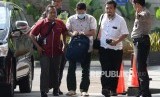 REPUBLIKA.CO.ID, JAKARTA -- Kepala Kantor Imigrasi Kelas I Mataram Kurniadie (bermasker) digiring petugas saat tiba di Gedung KPK Merah Putih, Jakarta, Selasa (28/5).