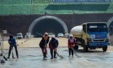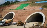 REPUBLIKA.CO.ID, SUMEDANG -- Alat berat melintasi terowongan jalan tol Cisumdawu di Pamulihan, Kabupaten Sumedang, Jawa Barat, Selasa (28/5/2019).