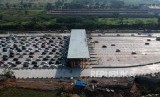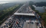 Sejumlah kendaraan pemudik terjebak kemacetan di Gerbang Tol Cikampek Utama, Karawang, Jawa Barat, Kamis (30/5). (FOTO : Republika/Putra M. Akbar)