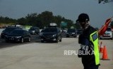 Petugas mengatur arus lalu lintas saat diberlakukan sistem satu arah di Gerbang Tol Cikampek Utama, Karawang, Jawa Barat, Kamis (30/5). (FOTO : Republika/Putra M. Akbar)