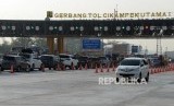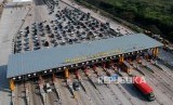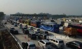Sejumlah kendaraan pemudik mengantre memasuki Gerbang Tol Cikampek Utama saat diberlakukan sistem satu arah di Karawang, Jawa Barat, Kamis (30/5). (FOTO : Republika/Putra M. Akbar)