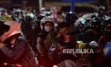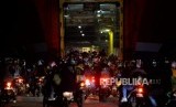Sejumlah pemudik motor menunggu untuk menaiki kapal di Dermaga VII Pelabuhan Merak, Banten, Jumat (31/5) dini hari. (FOTO : Republika/Prayogi)
