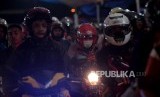 Sejumlah pemudik motor menunggu untuk menaiki kapal di Dermaga VII Pelabuhan Merak, Banten, Jumat (31/5) dini hari.  (FOTO : Republika/Prayogi)