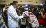 Presiden ke-6 RI Susilo Bambang Yudhoyono (tengah) menyalami peziarah almarhumah Ibu Ani Yudhoyono ketika disemayamkan di Kedutaan Besar Indonesia di Singapura, Sabtu (1/6). (FOTO : M N Kanwa/Antara)