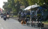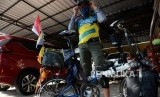 Pemudik pengguna sepeda bersiap melakukan perjalanan di Jalan Raya Pantura, Cirebon, Jawa Barat, Sabtu (1/6). (FOTO : Republika/Putra M. Akbar)