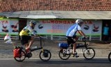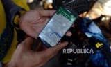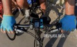 Pemudik pengguna sepeda melihat GPS untuk sampai ke tempat peristirahatan selanjutnya di Jalan Raya Pantura, Cirebon, Jawa Barat, Sabtu (1/6). (FOTO : Republika/Putra M. Akbar)