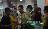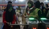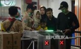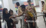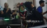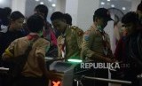 REPUBLIKA.CO.ID, MERAK -- Anggota Pramuka membantu pemudik di Pelabuhan Merak, Banten, Ahad (2/6) dini hari.