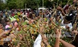 Grebeg Syawal. Warga berebut Gunungan Grebeg Syawal di Halaman Masjid Gedhe Kauman, Yogyakarta, Rabu (5/6/2019). (FOTO : Republika/ Wihdan)
