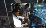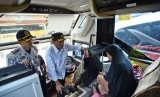 Menteri Perhubungan Budi Karya Sumadi (kiri) menguji kelayakan salah satu bus di Terminal Bus Kampung Rambutan, Jakarta Timur, Kamis (6/6/2019). (FOTO : ANTARA FOTO)