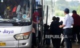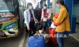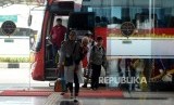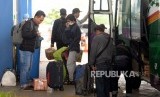 REPUBLIKA.CO.ID, JAKARTA -- Sejumlah penumpang dari berbagai daerah turun dari bus Antar Kota Antar Provinsi (AKAP) di Terminal Terpadu Pulo Gebang, Jakarta, Sabtu (8/6).
