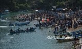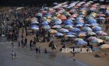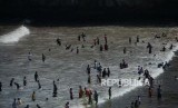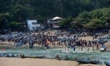 REPUBLIKA.CO.ID, YOGYAKARTA -- Warga memadati kawasan Pantai Baron, Gunungkidul, Yogyakarta, Sabtu (8/6/2019).