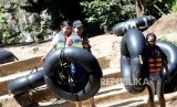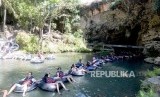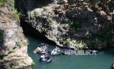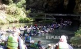REPUBLIKA.CO.ID, YOGYAKARTA -- Pengunjung mencoba wisata river tubing di Goa Pindul, Gunung Kidul, Yogyakarta, Sabtu (8/6/2019). Pada liburan Idul Fitri 1440H Goa Pindul dikunjungi 800-1.000 pengunjung setiap harinya.