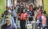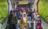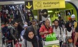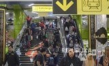 REPUBLIKA.CO.ID, JAKARTA -- Sejumlah pemudik tiba Stasiun Gambir, Jakarta Pusat, Ahad (9/6). PT Kereta Api Indonesia (KAI) persero mencatat hingga H+4 arus balik Lebaran atau 9 Juni ini sebanyak 78.249 pemudik telah tiba melalui Stasiun Gambir.