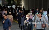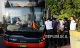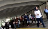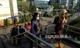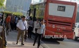 REPUBLIKA.CO.ID, JAKARTA -- Sejumlah pegawai saat mengantre menaiki bus di kawasaan Sudirman, Jakarta, Senin (10/6). Pasca-Hari Raya Idul Fitri 1440 Hijriyah sejumlah pegawai perusahaan swasta sudah kembali bekerja dan beraktivitas normal.