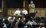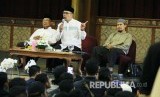 Bersama Ustadz Rahmat Baequni (kanan) dan Ketua MUI Jawa Barat Prof Rahmat Syafei (kiri), Gubernur Jawa Barat Ridwan Kamil menjelaskan karya arsitektur masjid rancangannya pada Silaturahim dan Diskusi Umum bertajuk Bersama Membangun Ummat, di Balai Asri Masjid Pusdai, Kota Bandung, Senin (10/9). (FOTO : Republika/Edi Yusuf)