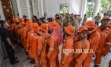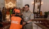Dalam acara itu, ada pula anggota Penanganan Prasaran dan Sarana Umum (PPSU) dengan seragam khas oranye serta pasukan hijau dari Dinas Pertamanan DKI.