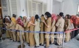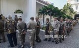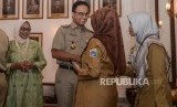 REPUBLIKA.CO.ID, JAKARTA -- Gubernur DKI Jakarta Anies Rasyid Baswedan menggelar halal bihalal pada hari pertama masuk kerja usai Hari Raya Idul Fitri, Senin (10/6). Sejumlah pejabat dan Pegawai Negeri Sipil (PNS) di lingkungan Pemerintah Provinsi (Pemprov) DKI tampak bersalam-salaman di Pendopo Balai Kota, Jakarta Pusat.
