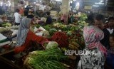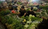 REPUBLIKA.CO.ID, JAKARTA -- Pedagang melayani pembeli di pasar tradisional kawasan Pasar Minggu, Jakarta, Selasa, (11/6).